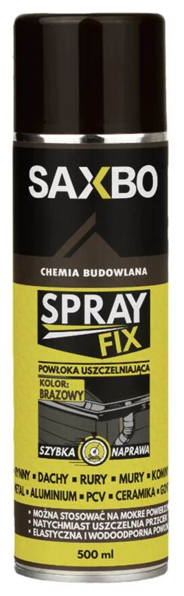 Elastyczna powłoka uszczelniająca w sprayu, która szybko i skutecznie naprawia przecieki i pęknięcia na większości powierzchni budowlanych*. Spray FIX zapewnia wodoodporne uszczelnienie, które zapobiega wnikaniu wilgoci, korozji i rdzy. Nowoczesna, gęsta formuła o znakomitej lepkości idealnie nadaje się do wypełniania pęknięć i szczelin, w miejscach narażonych na zmianę temperatur (do +90°C), opady atmosferyczne czy promieniowanie UV. Może być stosowany nawet na wilgotne podłoża. Po utwardzeniu można go pomalować większością farb.